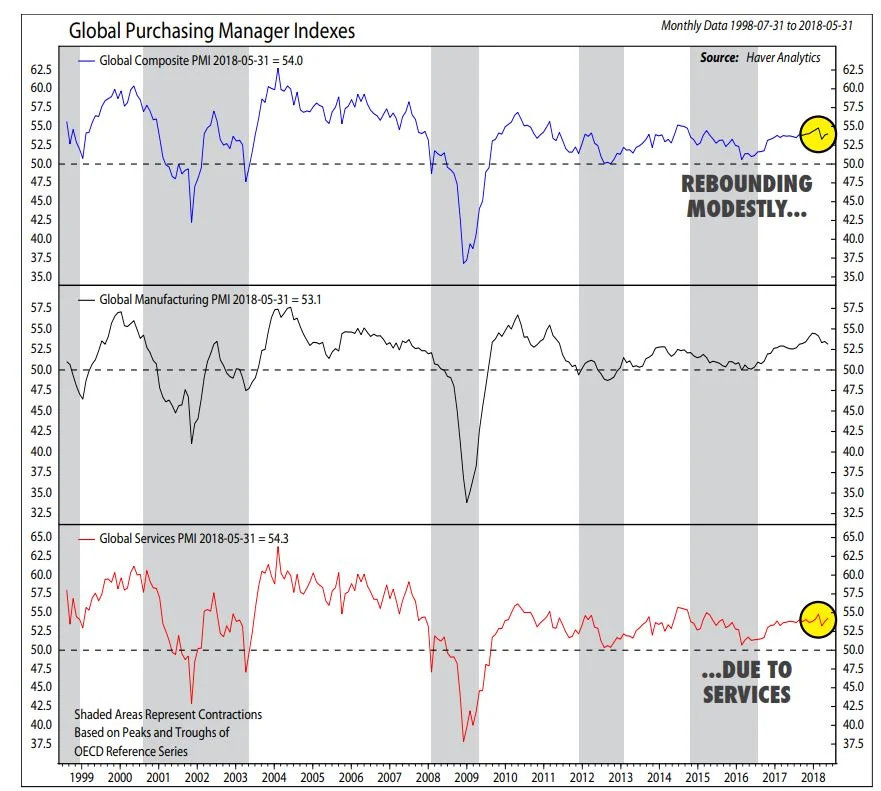 Risks remain a plenty: the sentiment sapping threats of a trade war, the Nov. mid term elections & the Mueller investigation, an overly aggressive Fed leading to an inverted yield curve (though history suggests equities can do fine in that scenario), or an EM liquidity issue. These risks, many of which are hard to handicap, lie behind our decision to hold cash, gold and a significant UST position.